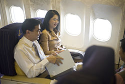 Photo by: Government of Thailand, License: CC-BY-2.0, http://commons.wikimedia.org/wiki/File:Abhisit_and_Pimpen_Vejjajiva_on_the_flight_to_Singapore_APEC_CEO_Summit_2009.jpg
