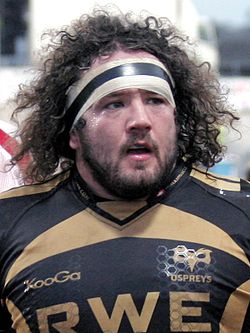 Adam Rhys Jones (born 8 March 1981) is a Welsh international rugby union player currently playing for the Ospreys in the Pro12 league. His usual position is at tighthead prop. Jones has also represented Wales previously playing for the national under-23 team and going onto make his debut for the Wales national rugby union team in 2003. He is one of a small group of Welsh players to have won three Grand Slams including Gethin Jenkins Ryan Jones Gareth Edwards Gerald Davies and JPR Williams.