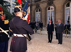 Alain Richard born on 29 August 1945 in Paris is a French politician. An alumnus of the Ecole nationale d'administration he was mayor of Saint-Ouen-l'Aumône and member of the French parliament elected in Val d'Oise. A member of the French socialist party and ally of Lionel Jospin he was the French Minister of Defense from 1997 to 2002. Preceded byCharles Millon Minister of Defence1997-2002 Succeeded byMichèle Alliot-Marie