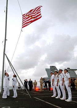 Photo by: U.S. Navy photo by Photographer's Mate 2nd Class H. Dwain Willis., License: CC-PD-Mark, http://commons.wikimedia.org/wiki/File:US_Navy_020911-N-1058W-001_Sailors_aboard_the_USS_Harry_S._Truman_(CVN_75)_raise_the_.jpg