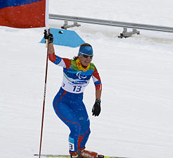 Anna Alexandrovna Burmistrova is a Russian Paralympic biathlete and cross-country skier. She was born with Erb's palsy which resulted in her left arm being paralyzed. She was named Honoured Master of Sport for her efforts at the 2010 Paralympic Games.