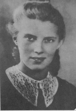 Anna Zakrzewska (born 24 December 1925 - died 11 August 1944 in Warsaw) served with the Polish underground army as a courier and a medical orderly. She was killed in the course of desperate combat during the Warsaw Uprising.