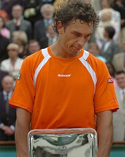 Mariano Rubén Puerta (born September 19 1978 in San Francisco Córdoba) is a former Argentine professional male tennis player best known for making the final of the French Open in 2005 where he lost to Rafael Nadal in four sets. He won 3 singles titles and reached a career-high singles ranking of World No. 9.