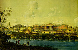 Matvey Fyodorovich Kazakov (Russian: 1738 - 7 November 1812) was a Russian Neoclassical architect. Kazakov was one of the most influential Muscovite architects during the reign of Catherine II completing numerous private residences two royal palaces two hospitals Moscow University and the Kremlin Senate. Most of his works were destroyed by the Fire of 1812; they were later rebuilt with various degrees of alteration.